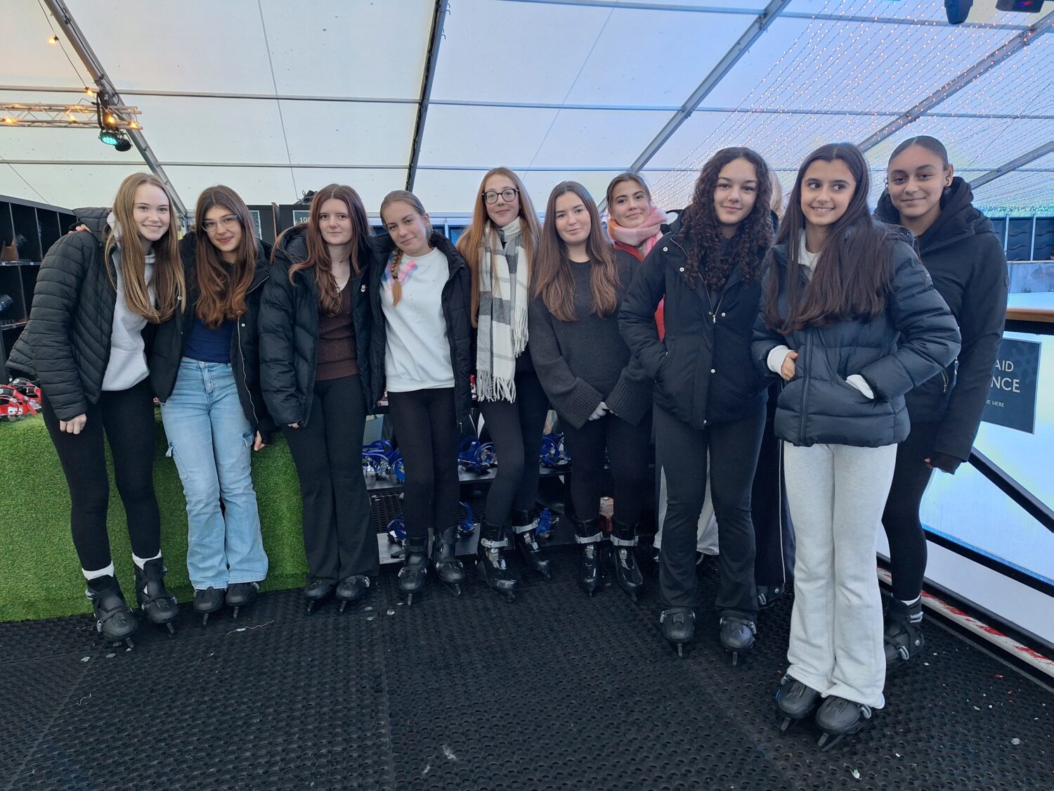Year 9 and Year 10 netball players from Leigh Stationers’ Academy took part in a celebration trip to Ruxley Manor Ice Skating Rink in recognition of their continued commitment and success in representing the academy.